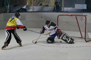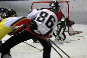 RED-ZONEキャプテン近藤選手に直撃インタビュー! 1.バディーズ戦で激闘の末ペナルティーショットをセーブして勝利しまし た!厳しい試合でしたが勝因はどこにあったと思いますか? 1.引き分けに持っていけたのは運だと思います。バディーズのセットはとて も寄せ集めチームとは思えないほど呼吸がぴったりで、いいようにシュートを 打たれてましたし。シュートアウトで競り勝ったのはキーパーのおかげです。 2.ゴーリーが二人いらっしゃるのでチームとして非常にいいコンディション で、試合練習等が出来ると思いますが、試合練習等ではどのようにゴーリーと コミュニケーションをとっていますか? 2.キーパーとのコミュニケーションで気をつけているのは以下の点です。 ・試合前に酒を与えない ・失点をいつまでも責めない 3.チームには頑張っている女性陣もいらっしゃいますが、特に> S−40戦 で笹尾(美)選手が第3クオーターに得点してから、> このピリオド3得点と 、チームの雰囲気を変える1点でした。 今後の女性陣にはどういう活躍を期待 されていますか? 3.うちの女性陣は練習熱心です。その成果を充分に発揮してもらいたいと思 います。そして性別の差や年齢の差を超えて楽しめるスポーツであることを実感 し、周りに発信していけるようになってもらいたいと思います。 4.レーオフでは強豪のOVERとの対戦カードが決定しております。何か作戦はあ りますか?? 4.特別な対策はないですが、いろんなところで必ず対戦する相手なので、お 互いに怪我がないよう今までどおり楽しくやれればよいと思います。 |