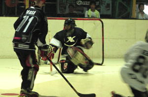 | リーグ2今期最後の試合はOVER対コヅモの一戦となり、両チーム共に大量得点での決勝進出となった。 リンク状態の悪い中いつも通りの試合展開は期待できず果たしてこの決勝にどのような影響を及ぼすのか?? 序盤から好調な出だしを見せたのはコヅモ! 1:51コヅモ22番セグラマウリシオ選手のゴールで先制すると、73番中澤選手→71番河原選手のゴールで追加点、さらに96番セグラウラジミル選手らのゴールで第1クオーターを4ー0で通過するコヅモ! 第2クオーターにも着実に得点を重ね、反撃したいOVERであったが第2クオーター8:55に86番落合選手→32番徳野選手のゴールが飛び出すも前半を終了して7−1と不本意な内容。 同じコートで試合しているにも関わらず、やはりコートに苦戦するOVERに対して、バランスこそ崩す場面はあるものの非常に動きの良いコヅモ。 第3、第4クオーターに20番中島選手が追加点を加えたOVERに対してセグラ兄弟の連携が炸裂したコヅモは9点を追加して16−3とOVERに圧勝! 予想だにしない展開に観客を驚かすも、セグラマウリシオ選手はなんと7ゴール5アシストと12ポイント、セグラウラジミル選手が6ゴール2アシストで8ポイントと大活躍し、念願の優勝を手にすることとなった! 滑るコートでも思い切りの良い走り込みとパスワークのコヅモに対して今まで急激な展開にも対応してきたOVERのDF陣もこの日ばかりはスケーティングがついて来ず、最後の最後で優勝を逃してしまう結果となった! |