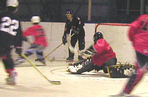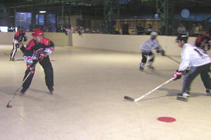 | 第1試合、念願の勝利を目指して奮闘する姿に応援が集まる"W"RED-ZONEの相手はOVER 。 ここまでコヅモ以外に負けていないOVER は、常に安定した試合運びをしてきている。"W"RED-ZONEにとっては非常に分の悪い試合が予想されるが果たして・・ 先制点は"W"RED-ZONEであった!第1クオーター33番笹尾猛選手→29番津吹選手のゴール!序盤互角の展開を見せる両チームであったが8:38、OVER21番菊池選手の目も覚めるようなスラップショットが飛び出すとそこから流れは一転してOVERペースに! 試合は"W"RED-ZONE23番近藤選手の2ゴール、33番笹尾猛選手の3ゴール2アシストと主力選手の活躍で踏ん張りをみせるがOVER に追いつくことは出来ず、9−6でOVER が勝利した! 女子を含めたメンバー編成こそ似た両チームであるが、積み上げてきた歴史というものなのか、チームとして練習してきた成果なのか非常にチームワークが良く、隙がない。大健闘をみせた"W"RED-ZONEに拍手を贈ると共に是非OVER のようなチーム力を今後は期待したい! |