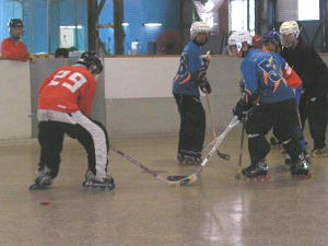 リーグ3の初戦はもずくす対CLOVERの一戦! 第1ピリオドは両者互角の出だしながら、両ゴーリーの好セーブで0−0。 記念すべきリーグ3初ゴールはもずくす! 第2ピリオドに18番甲斐谷選手→奥田選手のゴールで先制! さらに2番稲村選手のゴールで追加点をあげ2−0! しかしその後CLOVER30番足立選手のゴールで2−1と1点を返され、人数不足に悩むもずくすは徐々にペースダウンしてしまう。 ここでCLOVER31番稲垣選手にゴールを許しついに2−2の同点! 第3ピリオドはなんとか踏ん張るもずくすであったがついに第4ピリオドに追加点をあげられゲームセット。 4−2でCLOVERが初勝利を納めた! またリーグ3第2試合はちーむイヒ!対Jads.の一戦! 先制はちーむイヒ!! 10番天野選手の華麗なゴールで開始50秒の電撃ゴール! さらに2分、5分にも連続ゴールを決め、この勢いではコールドペースト青ざめるJads.ゴーリー谷口。 しかも開始5分で「弱点の股下」まで見破られ、出口の見えない、お先真っ暗スランプ状態の谷口ゴーリーであったが、6分にJads.61番谷口(華)選手のゴールで1点を返すと47番谷口(泰祐)選手のゴールも飛び出し仲間に助けられる展開。 しかしさらにちーむイヒ!は内田選手も追加点をあげ第1ピリオドにして4−2でちーむイヒ!が快調な出だしを見せる! このままでは4ピリで16失点なのかと遠くを見つめだしたJads.谷口ゴーリーであったが、35番今井選手のゴールも飛び出し、仲間の助けもあってその後は互角の展開で、両チームとも2点づつ加え、終わってみれば6−4でちーむイヒ!が快勝するも、大量失点のトラウマだけは何とかまぬがれた形となった! |