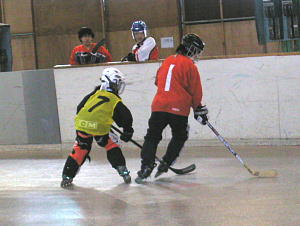 リーグ3三位決定戦のカードはもずくす対Jads.! 序盤人数が四人ながらも動きの良さを見せるもずくすは第1ピリオド1:27、2番稲村(彰)選手→6番奥田選手の連携で先制点! さらに6:55に2番稲村選手の追加点で2−0とし試合を優勢に運ぶ! 第2ピリオド、何とか巻き返しを計りたいJads.だったがシュート本数は4本と抑えられ流れを作れずもずくすペースの展開! しかしさすがに疲れが見え始めた第3ピリオド、ついに61番谷口(華)選手→35番今井選手→5番小池(翔)選手のゴールで1点をあげると9番小池(龍)選手→47番谷口(た)選手の連携で追加点をあげて同点! 第4ピリオドにも5番小池(翔)選手、小池(龍)選手らの連続ゴールで逆転に成功し、小池親子の大活躍で4−2と逆転! 何とか守りきりたいJads.に対し猛攻を見せるもずくすに対し8:34Jads.はたまらず反則! これを2番稲村(彰)選手が正確にコーナーに決めて3−4と詰め寄るもずくす! この後も攻め続けるも何とかJads.が逃げ切り悲願の1勝をあげて3位の座を射止めた! ついにリーグ3決勝を迎えた最終戦はCLOVERvsちーむイヒ!! 序盤からリーグ3とは思えない素晴らしくスピードある展開に先制点をあげたのはCLOVER! 15番本間選手からのロングパスを18番佐藤(由)がミドルから振り抜き華麗なワンタイムショットでゴール! 負けじとちーむイヒ!、エース10番天野選手が4:03に同点弾を放つと5:57には9番泉選手→4番小宮山選手→1番富永選手のダブルアシストゴールで逆転に成功! しかしねばり強くチャンスをものにするCLOVERは9:20に再び同点として一進一退の攻防を見せる! 第2ピリオドにも両チーム2点ずつを返し緊迫感ただようゲーム展開に盛り上がりを見せる! しかし第3ピリオドちーむイヒ!3番吉田選手、10番天野選手の連続ゴールでペースを乱すと一気に流れを引き込んだちーむイヒ!が第4ピリオドにも3点を加えて9−4で快勝! リーグ3はちーむイヒ!が連続優勝を果たした! |