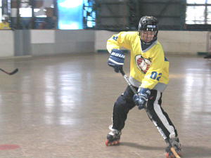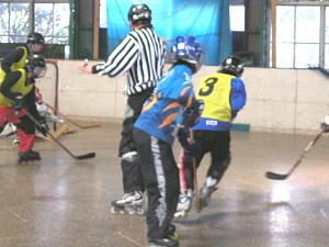 | リーグ4は総当りの最終戦となったこの日の第1試合はSTINKERS対バクテリアの一戦! ここまで勝ち星のないSTINKERSはプレーオフに最も力を発揮するチームで、前期優勝を果たしたとはいえ、そろそろエンジンをかけていきたいところだろう。 バクテリアは勝てば1位通過の可能性を残している。 試合は第1ピリオド2:04、STINKERS7番岸選手のゴールで先制点をあげるとさらに7:23にも2番比良選手→7番岸選手→5番馬場選手のダブルアシストゴールで2−0とする! 反撃したいバクテリアも5番金子選手→21番浅野選手の連携で1点を返すがその後は両者得点チャンスを作るも得点はならず第1ピリオドの得点差を縮めることなく2−1でSTINKERSが初白星をあげた! リーグ3は決勝トーナメントに突入し、第1試合は2位通過のJads.と3位通過のTHURSDAYの一戦! 前回は1点差のでJads.に軍配が上がったが後半戦でTHURSDAYも調子をあげてきているだけに試合の行方は分からないところだ。 試合は第1ピリオド4:25、71番河原選手→14番荒川選手の連携でゴールを決めるとその後も試合を有利に展開し、第2・第3ピリオドにも得点を追加し3−0! 何とか反撃したいJads.であったが第4ピリオドにも追加得点を決められ4−0。 一矢報いたいJads.は6:47に2番田島選手のゴールで何とか1点を返すと9:09には4人攻撃でさらに1点を返すがここであえなくタイムアップ! 4−2でTHURSDAYが決勝に駒を進めた! |