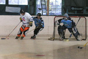 リーグ3は7チーム参加で4チームとの対戦で勝負を争うこととなった! この日のリーグ3参加チームは以下の7チーム。 □リーグ3 参加6チーム 1.SS Ladies 2.こまざわ魂 3.ハープシールズ 4.宮内リーゼンツ 5.法政ゴマフアザラシズ 6.バタフライスタイル SS LadiesはGKに杉万選手を迎え、プレーヤーに小池(翔)選手(中学生)を加えての参加! こまざわ魂は鈴木選手率いるチームだが鈴木選手はGKでの腕前を披露する予定! 同じくバラフライスタイルでは竹原選手がGKのマスクをかぶり、上級者の専門外GKの腕前はいかがなものか注目が集まる。 そして前回に引き続きアイスホッケー界から参加の宮内リーゼンツと法政ゴマフアザラシズの学生チームが慣れないインラインで今度はどんな作戦で戦うか注目! また前回優勝の強豪チーム、ハープシールズを破るチームが現れるか注目だ!。 |