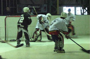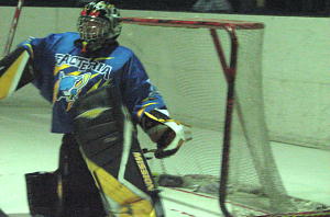 安定したセーブで定評あるMGLゴーリー前田選手が痛めていた靱帯をさらに痛め苦痛に顔をゆがめ中断。