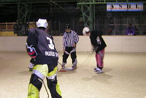 | この日の最終戦はMGL対コヅモの一戦! 圧倒的攻撃力と固い守りをみせるGKが絶妙なバランスを保つ強豪コヅモだが前回はわずかな連携の乱れから隙をつかれた試合だった。 しかしプレーオフ前にチームに勢いをつけておきたいところであろう。 対するMGLもTeam YSHL同様、大金星を狙っていきたいところだ! ところが試合開始してみるとコヅモは交代なしのプレーヤー3人、MGLも4人と人数不足に悩み、大金星どころではない苦しい状態。 試合開始早々1番佐竹選手のゴールで先制したコヅモは一気に試合を決めようという全力プレーを見せ、第1ピリオドに4点を加えると第2ピリオドにも8番セグラマウリシオ選手、3番太田選手らのゴールでさらにリードを広げ、守っては完璧なセーブのGK柳田選手が、カウンターの縦パスを送るとこれを1番佐竹選手→8番セグラマウリシオ選手が決めてダブルアシストゴール! 常にシュートで終わらせる強力な攻撃でMGLを圧倒すると、やはり守りで体力を奪われたMGLの懸命な守りも長くは続かず、結局試合は15−0でコヅモが圧勝することとなった! 人数が少ないながらポイントポイントで高い連携とシュート力を見せたコヅモはプレーオフへ向けて存在感をさらに増した試合となった! |