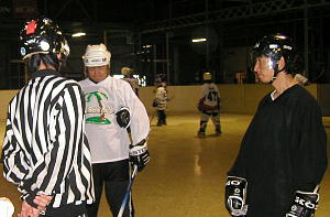 | 交流戦の第3試合は水たまりベーハー対MGLの一戦! 水たまりベーハーも順位は上位ながらMGLとの直接対決では惜敗しているだけに集中力が高まる試合となるだろう。 第1ピリオド2:39、99番青山選手→7番今井選手の先制点で勢いに乗ると99番青山選手の活躍でさらに2得点を追加しいきなり3−0とリード! 何とか反撃したい水たまりベーハーも第2ピリオドに64番末永選手→7番山上選手のゴールで1−3とするもMGL22番津崎選手のゴールで1−4で後半戦へ。 第3ピリオドは両ゴーりーのファインセーブで試合は拮抗! 第4ピリオドに勝負が持ち越されるとMGLは99番青山選手、22番津崎選手らの2ゴール、水たまりベーハーは4番大森選手の2ゴールと全く互角の展開であったが第1ピリオドでの得点差が響き、6−3でMGLが水たまりベーハーを破り白星を挙げた! |