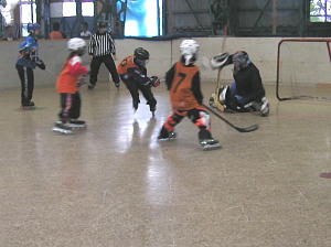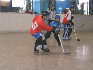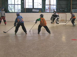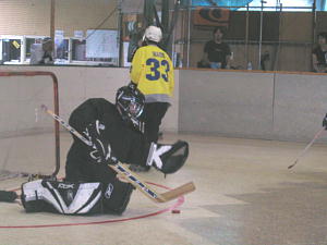 リーグ3の初戦はもずくす対CLOVERの一戦! 第1ピリオドは両者互角の出だしながら、両ゴーリーの好セーブで0−0。 記念すべきリーグ3初ゴールはもずくす! 第2ピリオドに18番甲斐谷選手→奥田選手のゴールで先制! さらに2番稲村選手のゴールで追加点をあげ2−0! しかしその後CLOVER30番足立選手のゴールで2−1と1点を返され、人数不足に悩むもずくすは徐々にペースダウンしてしまう。 ここでCLOVER31番稲垣選手にゴールを許しついに2−2の同点! 第3ピリオドはなんとか踏ん張るもずくすであったがついに第4ピリオドに追加点をあげられゲームセット。 4−2でCLOVERが初勝利を納めた! またリーグ3第2試合はちーむイヒ!対Jads.の一戦! 先制はちーむイヒ!! 10番天野選手の華麗なゴールで開始50秒の電撃ゴール! さらに2分、5分にも連続ゴールを決め、この勢いではコールドペースト青ざめるJads.ゴーリー谷口。 しかも開始5分で「弱点の股下」まで見破られ、出口の見えない、お先真っ暗スランプ状態の谷口ゴーリーであったが、6分にJads.61番谷口(華)選手のゴールで1点を返すと47番谷口(泰祐)選手のゴールも飛び出し仲間に助けられる展開。 しかしさらにちーむイヒ!は内田選手も追加点をあげ第1ピリオドにして4−2でちーむイヒ!が快調な出だしを見せる! このままでは4ピリで16失点なのかと遠くを見つめだしたJads.谷口ゴーリーであったが、35番今井選手のゴールも飛び出し、仲間の助けもあってその後は互角の展開で、両チームとも2点づつ加え、終わってみれば6−4でちーむイヒ!が快勝するも、大量失点のトラウマだけは何とかまぬがれた形となった! |