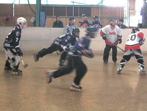第2試合は1位通過のひよっこもずくす対4位通過のCLOVERの対戦! 先制点はCLOVER11番末永選手! 8:54にゴールを決め快調な出だしを見せる。 第2ピリオド、パワープレーからひよっこもずくすが2番稲村(彰)選手→6番奥田選手の連携でゴールを決めて同点! さらに3:52にも2番稲村(彰)選手が決めて2−1と逆転! 1位の底力を見せる。 しかしこの日のクローバーは動きが衰えず、11番末永選手が再び同点弾を放つと3番本間選手→30番鈴木選手のゴールで再び逆転! この後第3ピリオドは両者打ち合いになるも両GKのファインセーブで得点はならず勝負は第4ピリオドへ! 3−4で向かえた第4ピリオドひよっこもずくすは0:31、またしても2番稲村(彰)選手が同点弾を放ち試合は振出へ! しかし死力を尽くした試合は2:19にCLOVER30番鈴木選手のゴールが決勝点となりゲームセット! 4位から接戦を制してCLOVERが決勝へ進出を決めた! |