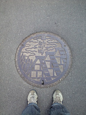 | 今ではその土地土地でいろんなマンホールがあるそうですね。 何気なく見つけてデザインもいいなと感心しました。 |